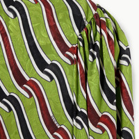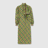 In the Cruise 2026 collection, structure meets sensuality in wide-shoulder silhouettes that command attention. Crafted from multicolor silk, this dress is defined by an allover ribbon print. - Multicolor silk - Allover ribbon print - Unlined - Self-tie neck bow - Long puff sleeves - Back button closure - Length: 49.2"