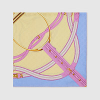 The House's silk accessories collection continues to reinterpret emblematic motifs, from the GG, Web, Flora, bamboo, Horsebit and equestrian inspirations, in sumptuous materials, intricate craftsmanship, and fresh hues. This carre is presented in a GG silk jacquard, playing with a balance of complementary hues. - Blue and orange GG silk jacquard - 35.4"W x 35.4"L - Made in Italy - The dimensions of this item may vary slightly as the hem is hand-sewn - Main fabric: silk 100%