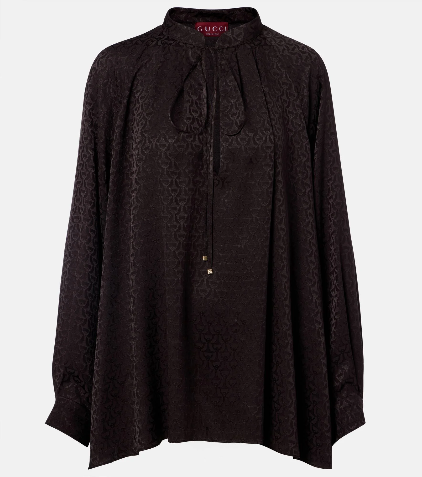 An iconic name within fashion on a global scale, Gucci was founded in Florence in 1921. This shirt is made from silk in Italy to a printed design. Product Details - Material: 100% silk - Care instructions: dry clean - Made in Italy - Color: brown - Designer color name: Deep Chocolate - Cuff: French round - Self-tie collar - Item number: P01119309 Size & Fit - True to size - Designed for a loose fit - Non-stretchy fabric - Falls below the hip - The model seen in the picture is 178cm-5'10" and wearing a size IT 40