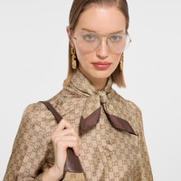 Introducing Spring Summer 2026. Silk and soft accessories designs continue to reinterpret emblematic codes through a creative lens in the La Famiglia collection. Crafted from a silk twill, this carre reveals an allover GG print. - Brown and light brown silk twill - Allover GG print - 21.6"W x 21.6"L - Made in Italy - The dimensions of this item may vary slightly as the hem is hand-sewn - Main fabric: silk 100%