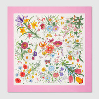 The House's silk accessories collection continues to reinterpret emblematic motifs, from the GG, Web, Flora, bamboo, Horsebit and equestrian inspirations, in sumptuous materials, intricate craftsmanship, and fresh hues. Crafted from a pink and multicolor silk twill, this carre is enriched with an allover Gucci Flora print. - Pink and multicolor silk twill - Allover Gucci Flora print - 35.4"W x 35.4"L - Made in Italy - The dimensions of this item may vary slightly as the hem is hand-sewn - Main fabric: silk 100%