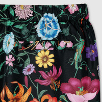 Introducing Spring Summer 2026. This style is inspired by the "La Contessa" look of La Famiglia. The collection reinterprets the House’s codes through singular personalities and distinctive aesthetic attitudes. Crafted from silk twill, this pair of pants is defined by an allover Gucci Flora print. - Multicolor silk twill - Allover Gucci Flora print - Unlined - Length: 43.7", Leg opening: 24.2", based on a size 42(IT) - Made in Italy - Fabric: 100% Silk - Lining: 75% Acetate, 25% Silk