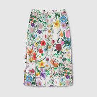 Introducing Spring Summer 2026. This style is inspired by the "La Flora" look of La Famiglia. The collection reinterprets the House’s codes through singular personalities and distinctive aesthetic attitudes. Crafted from silk twill, this pleated skirt is defined by an allover Gucci Flora print. - Multicolor silk twill - Allover Gucci Flora print - Unlined - Pleated - Length: 30.7", based on a size 38(IT) - Made in Italy - Fabric: 100% Silk