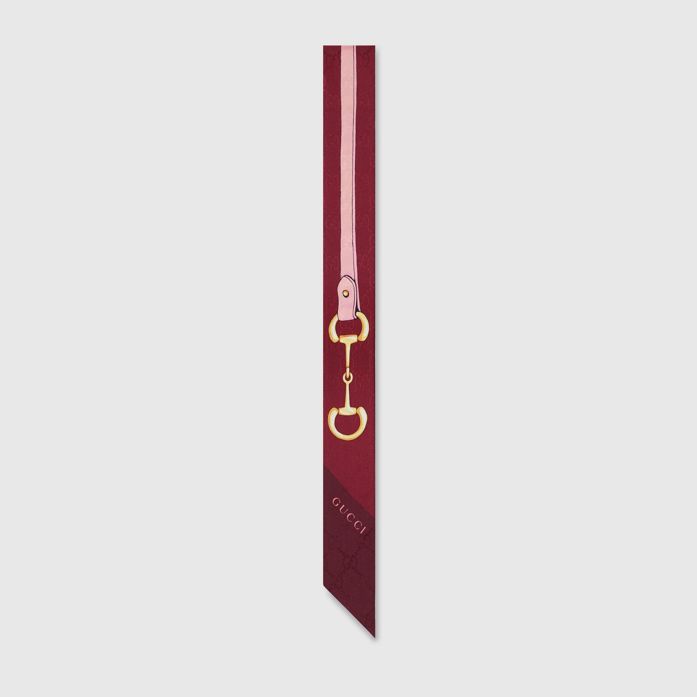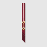 Horsebit details and riding motifs in sophisticated tones pay homage to the House's link with the equestrian world. This ribbon has been crafted from silk and features an allover chain Horsebit print. - Bordeaux silk twill - Allover chain Horsebit print - 2"W x 47.2"L