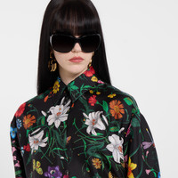 Introducing Spring Summer 2026. This style is inspired by the "La Contessa" look of La Famiglia. The collection reinterprets the House’s codes through singular personalities and distinctive aesthetic attitudes. Crafted from silk twill, this shirt is defined by an allover Gucci Flora print. - Multicolor silk twill - GG metal button - Allover Gucci Flora print - Point collar - Long sleeves - Front button closure - Length: 30.3", based on a size 40(IT) - Made in Italy - Fabric: 100% Silk
