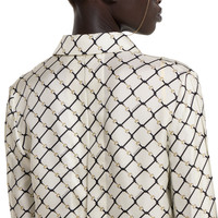 The Cruise 2026 women's ready-to-wear collection reimagines archival motifs with innovative prints, in a vibrant palette. Crafted from white silk twill, this shirt is defined by an allover Gucci Horsebit print. - White silk twill - Allover Gucci Horsebit print - Unlined - Point collar - Long sleeves