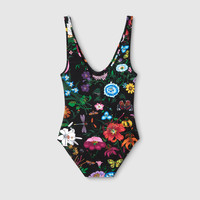 Introducing Spring Summer 2026. This style is inspired by the "La Contessa" look of La Famiglia. The collection reinterprets the House’s codes through singular personalities and distinctive aesthetic attitudes. Crafted from sparkling jersey, this swimsuit is defined by an allover Gucci Flora print. - Multicolor sparkling jersey - Allover Gucci Flora print - Scoop neck - Double G metal detail - Please note that intimates, including swimwear, tights, socks and lingerie can only be returned in new condition. Items should be unworn, in their original packaging and with all labels attached. - Made in Italy