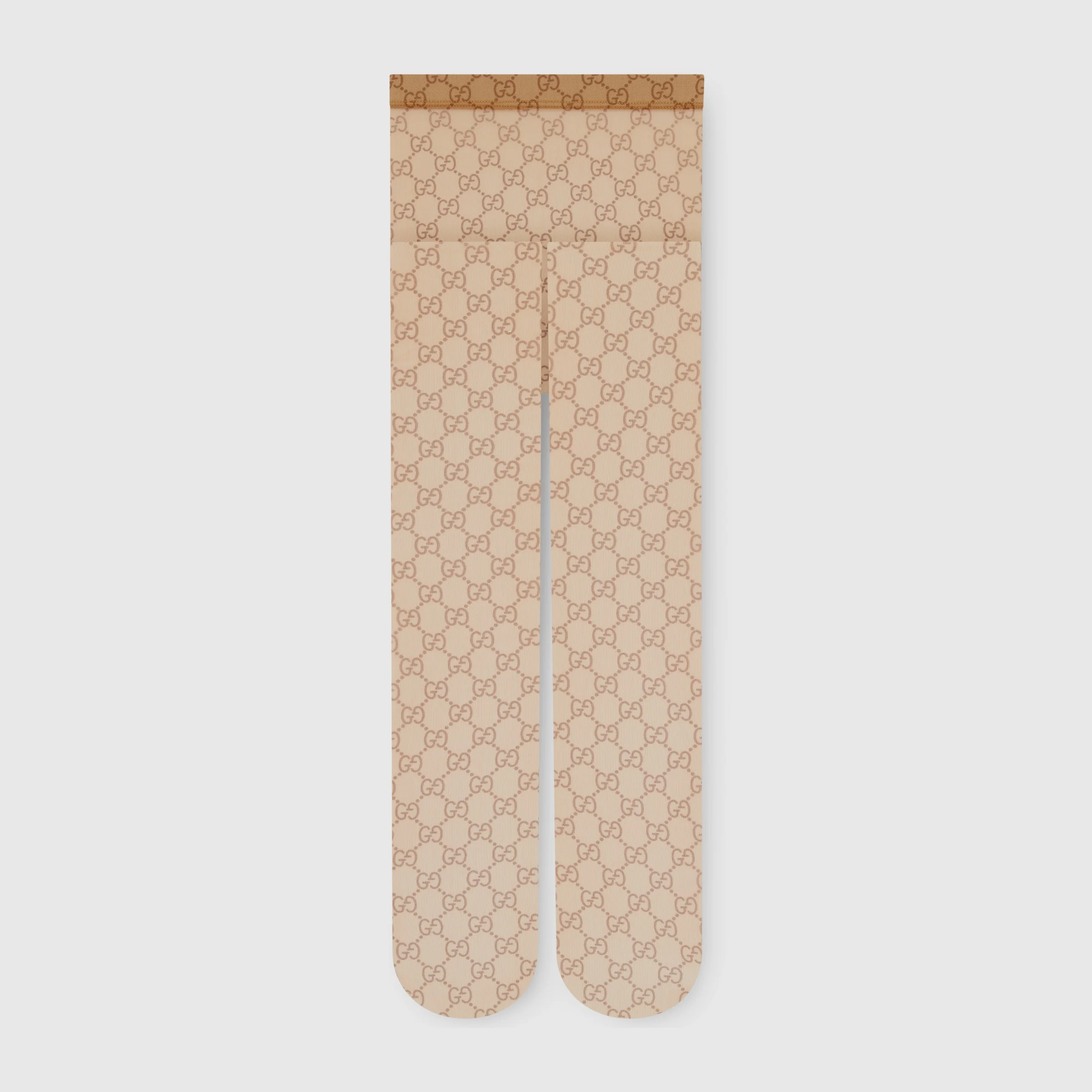 In the Fall Winter 2025 collection, these versatile tights are defined by an allover GG print. - Beige stretch nylon - Allover GG print - Made in Italy - Please note that intimates, including swimwear, tights, socks and lingerie can only be returned in new condition. Items should be unworn, in their original packaging and with all labels attached.