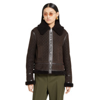 The Pre-fall 2025 collection introduces a new take on warm materials on sophisticated outerwear pieces, in traditional and contemporary silhouettes. This suede and shearling jacket presents an allover GG print. The functional and contemporary design is complete with a tonal leather trim. - Dark brown suede - Leather trim - Gucci logo silver-toned hardware - Allover GG print - Unlined - Shearling collar - Shearling trim - Two side pockets - Zip closure with logo puller - Made in Italy