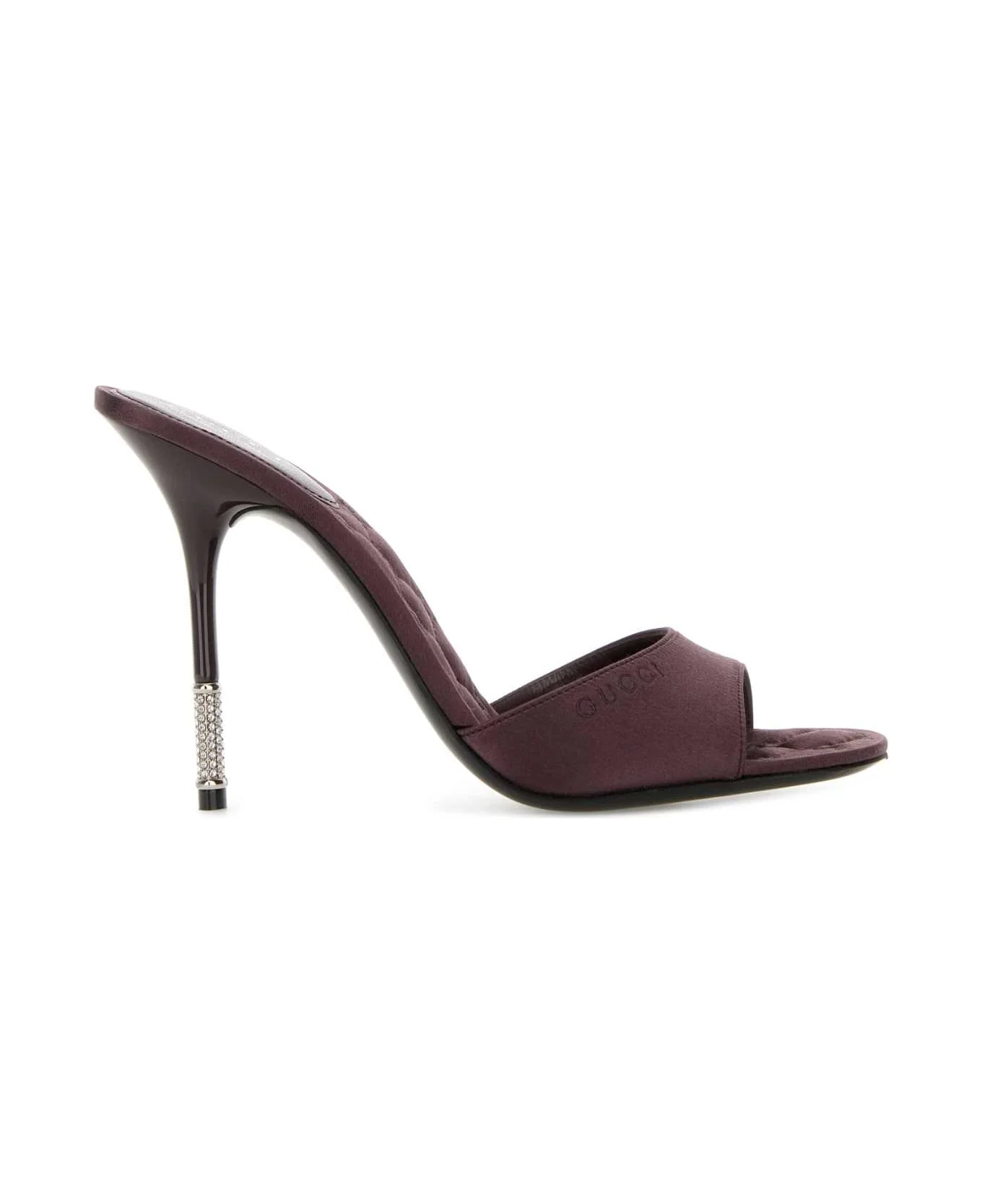 Purple Satin Mules from Gucci Made in: Italy Color: 391DKMOSTO Size and fit: - Heel height: 11 cm Model number: 853650F14005046