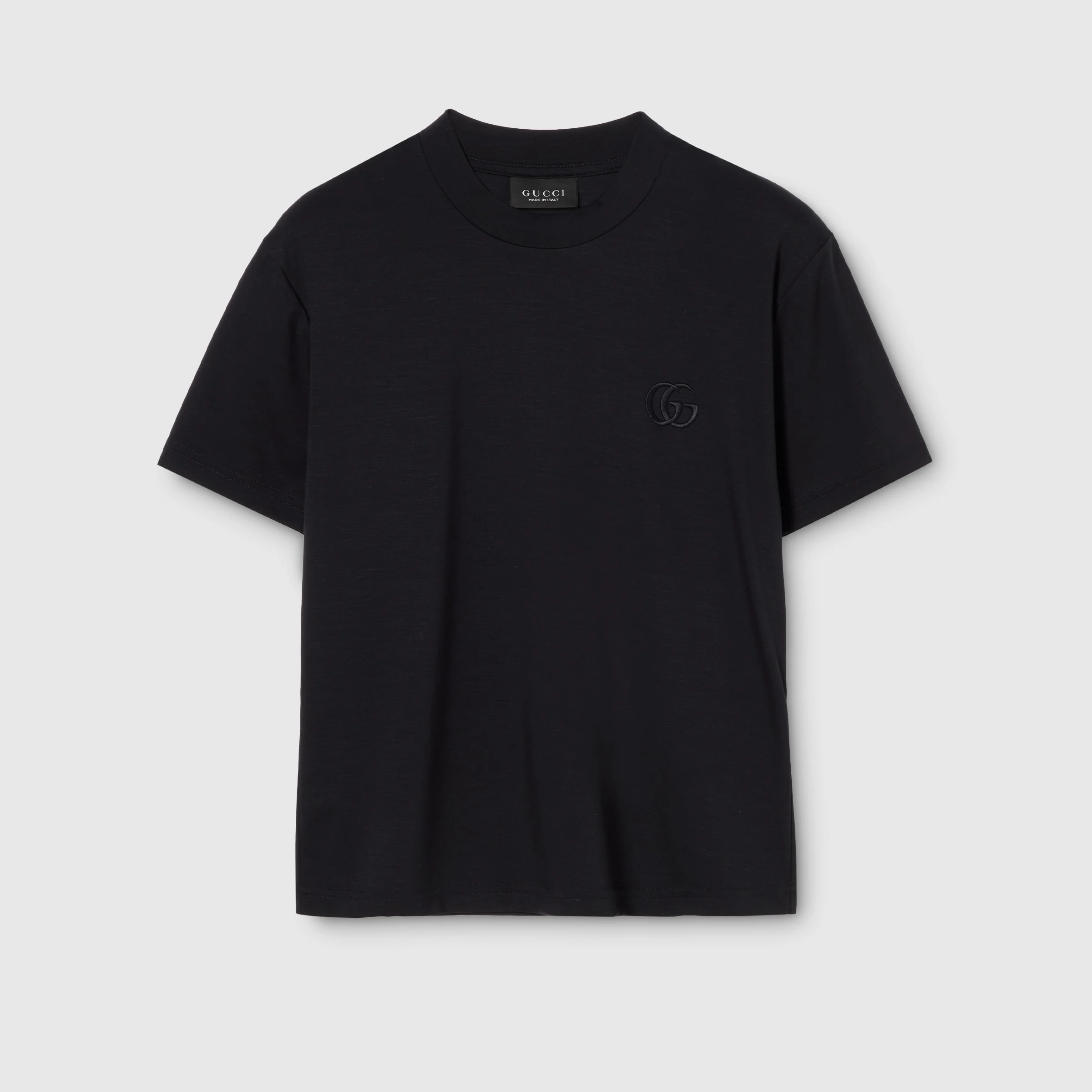 Introducing Spring Summer 2026. This style is part of the La Famiglia collection, which reinterprets the House’s codes through singular personalities and distinctive aesthetic attitudes. Crafted soft rayon jersey, this T-shirt is enriched with a Double G embroidery. - Black soft rayon jersey - Double G embroidery - Crewneck - Short sleeves - Length: 21.1", based on a size S - Made in Italy - Fabric: 85% Modal, 15% Elastane - Embroidery: 100% Polyester