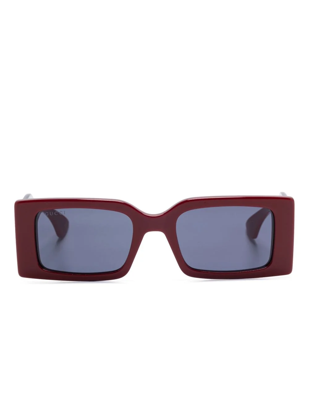 rectangle-frame sunglasses Highlights - Blood red - Nose pads - Curved tips - These glasses come with a protective case. Imported Composition Acetate 100% SIZE & FIT Measurement Arm Length 5.31 in(13.5 cm) Bridge Width 0.78 in(2 cm) Lens Diameter 2.04 in(5.2 cm) Total Width 5.62 in(14.3 cm)