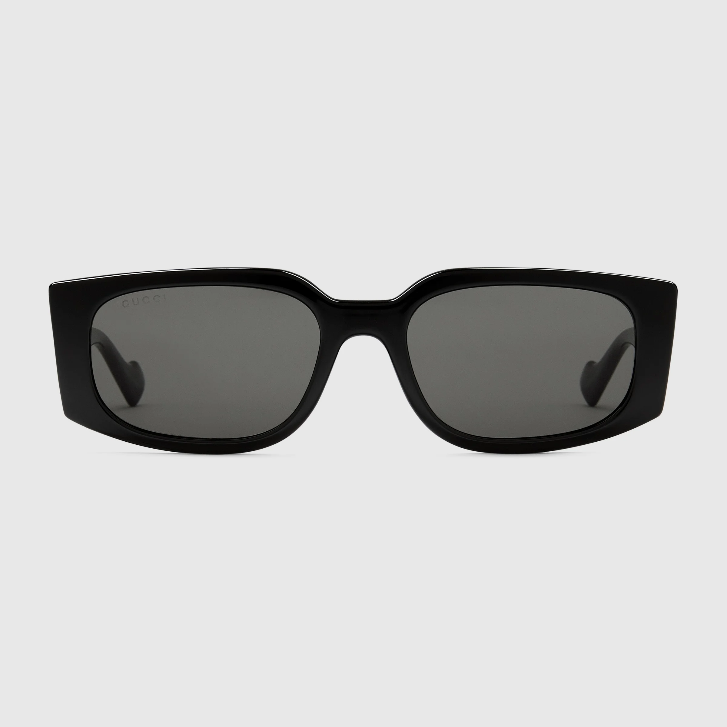 Sleek rectangular frames puts a twist on any ensemble, and the sculpted silhouette of this black injection frame adds visual interest. A gold-toned metal Double G detail adorns the temples, complete with solid grey lens. - Black injection frame - Black injection temples with gold-toned metal Double G detail - Solid grey lens - 100% UVA/UVB protection - Frame height: 1.7"; Frame Width: 5.7" - GG1534S - Temple length: 5.5"; Lens height: 1.45", Nose bridge length: 0.7" - Made in Italy - The glasses will arrive in a velvet case, available in a range of six jewel-toned colors, and paired with a coordinating satin lining. The case color will be individually selected for each pair of glasses, and comes with a matching satin flannel pouch and ivory microfiber cloth.