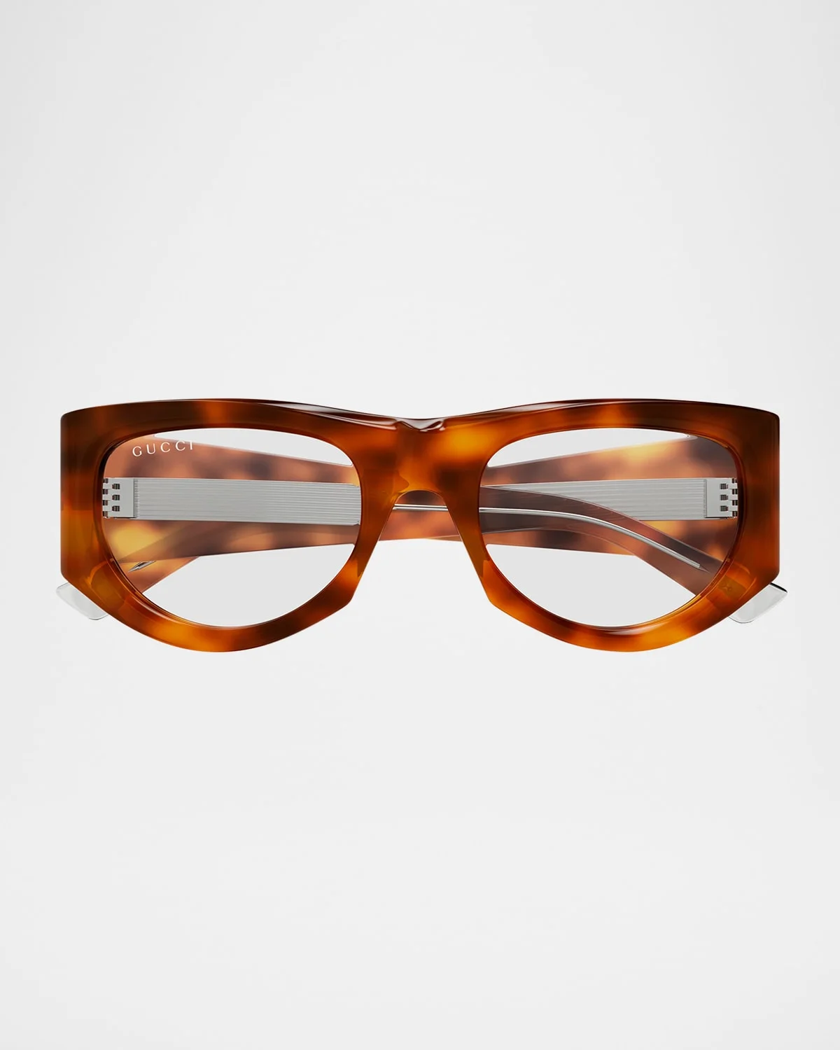- Gucci rectangle optical frames in acetate - Eye/bridge/temple (in mm): 53-21-140 - Saddle nose bridge - Thick, tapered arms - Logo at temples - Acetate - 100% UVA/UVB protection - Made in Italy - Proposition 65 warning for California residents
