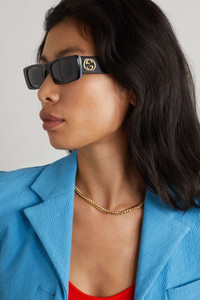 EDITORS'NOTES '90s-style sunglasses are huge this season, and Gucci's pair looks just like an authentic vintage design from the decade. They've been made in Italy from glossy black acetate and finished with the house's iconic gold 'GG' logo on each arm. Show them off with slicked-back hair. DETAILS & CARE - Black acetate - Come with a case - 100% UV protection