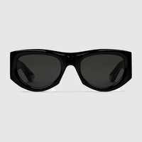 These stylish rectangular-frame sunglasses are distinguished by their glossy black acetate construction, featuring the iconic Gucci logo elegantly displayed on the temples. Complemented by solid grey lenses, they offer a perfect fusion of contemporary design and classic luxury. - Shiny black acetate frame - Shiny black acetate temples with Gucci logo - Solid grey lens - 100% UVA/UVB protection - GG1917S - Temple length: 5.51"; Lens height: 1.57"; Nose bridge length: 0.83" - Frame height: 1.9"; Frame width: 5.7" - Made in Italy - The Rosso Ancora packaging, a distinctive color chosen by Creative Director Sabato De Sarno to mark the beginning of Gucci's new creative chapter, includes a vinyl case and satin pouch.