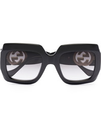 oversized square sunglasses oversized square sunglasses from GUCCI EYEWEAR featuring black, signature Interlocking G logo, gradient lenses, grey tinted lenses, oversize frame, square frame and curved arms. These glasses come with a protective case.. Made in Italy Composition Acetate 100%, Acrylic 100% SIZE & FIT Measurement Arm Length 5.51 in(14 cm) Bridge Width 0.9 in(2.3 cm) Lens Diameter 2.12 in(5.4 cm) Total Width 5.7 in(14.5 cm)