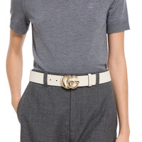 The GG Marmont collection introduces a reversible option for the new season. Crafted from soft GG Supreme leather and leather, this belt is defined by the signature Double G buckle. - White soft GG Supreme on one side, white leather on the other - Gold-toned hardware - Double G buckle - 1.5" width - Can be worn as a hip or waist belt. Sizing will differ based on where the belt is worn, please refer to the size guide to find your size.