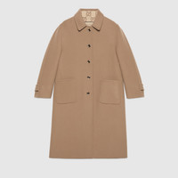 Reversible pieces play with the idea of exploration and experimentation that animates the House's narrative. Crafted from beige GG wool on one side and camel wool on the other, the coat takes on a retro feel thanks to vintage Interlocking G buttons. - Beige GG wool on one side, camel wool on the other - Vintage Interlocking G enameled buttons - Unlined - Point collar - Front pockets - Long sleeves - Length: 42.5", based on a size 38 (IT) - Made in Italy - The product shown in this image is a size 38 (IT)