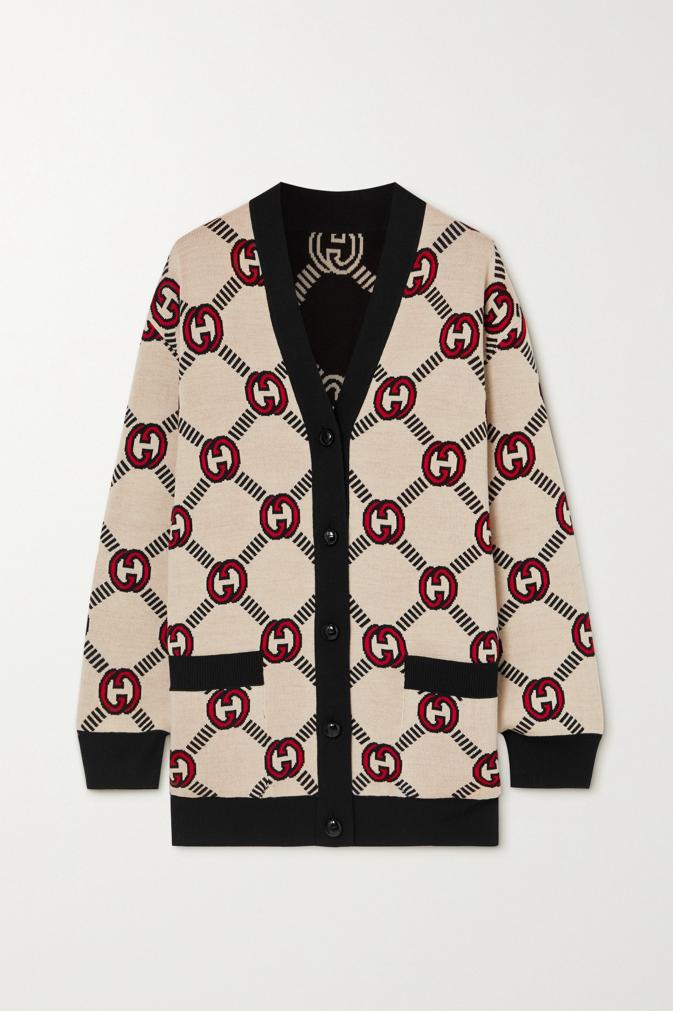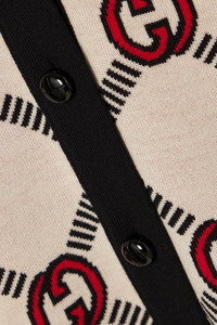 EDITORS'NOTES Gucci's cardigan is jacquard-knitted with a graphic version of the 'GG' emblem, which creates a retro feel. It's spun from plush wool-blend and has a reversible design, so you can change up which side you wear it on. SIZE & FIT - Fits true to size, take your normal size - Designed for a loose fit - Mid-weight knit - Model is 177cm/ 5'10" and is wearing a size XSmall DETAILS & CARE - Cream, red and black wool-blend - Button fastenings through front - 98% wool, 1% elastane, 1% polyamide; trim: 100% wool - Dry clean