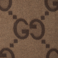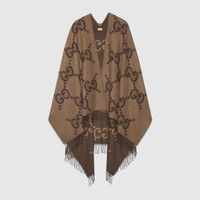 The jumbo GG returns as part of the latest Gucci Cruise 2024 collection. The maxi version of the Gucci logo is representative of the constant evolution of the House's heritage. Here, it is the defining element of this cape in beige and dark brown cashmere and complete with a tassel trim. - Beige and dark brown jumbo GG cashmere jacquard - Tassel trim - Reversible - 55.1"W x 78.7"L - Made in Italy