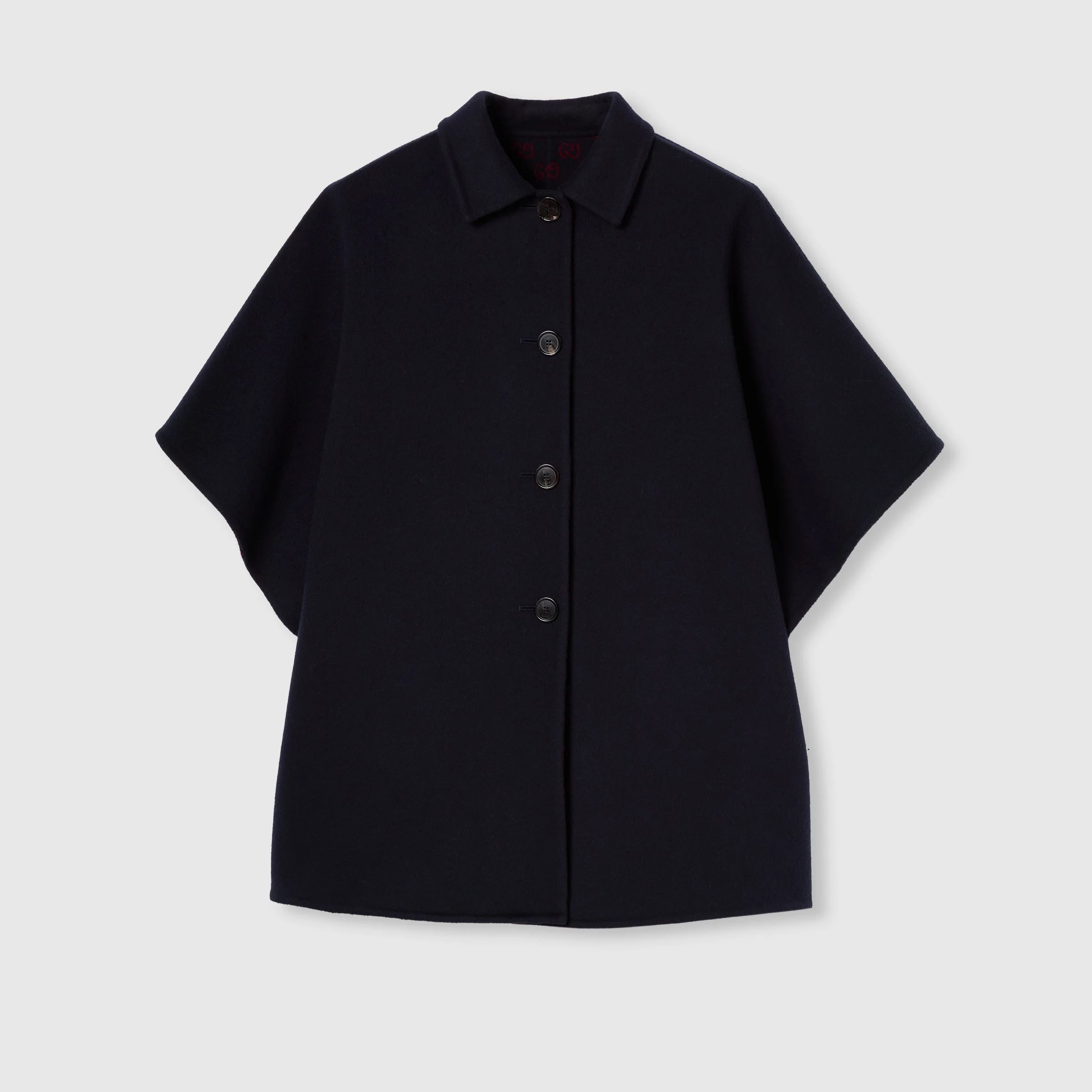 The Pre-fall 2025 collection introduces a new take on warm materials on sophisticated outerwear pieces, in traditional and contemporary silhouettes. This reversible coat with wide short sleeves appears in blue wool silk on one side and blue and red GG wool silk on the other. - Blue wool silk on one side - Blue and red GG wool silk on the other - Point collar - Dropped shoulder - Wide short sleeves - Chest: 51.2", based on a size 42 (IT) - Sleeves length: 21.2", based on a size 42 (IT) - Button closure - Oversize fit - Length: 30.3"; based on a size 42 (IT) - Made in Italy