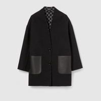 The Cruise 2026 coat collection is rooted in structure and warmth while introducing new silhouettes. This reversible coat appears in black and white GG silk wool on one side and reverses to black silk wool on the other. - Black and white GG silk wool on one side and black silk wool on the other - Unlined - V-neck - Front leather pockets - Front button closure - Length: 32.2