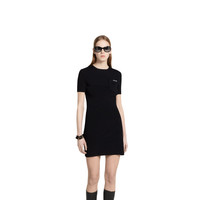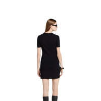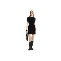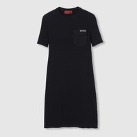 In the Spring Summer 2025 collection, the theme of casual grandeur includes basics such as this rib dress in fine mat viscose with an intarsia detail. - Black rib fabric - Gucci intarsia - Crewneck - Short sleeves - Breast pocket - Rib trim - Length: 33.4"; based on a size S - Made in Italy - The product shown in this image is a size small