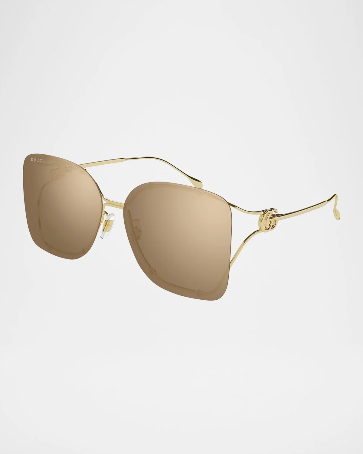 - Gucci rimless square sunglasses in metal - Lens/bridge/temple (in mm): 60-15-120 - Mirrored lenses - Adjustable nose pads - Logo on temples - Thin, tapered arms - 100% UVA/UVB protection - Made in Japan - Proposition 65 warning for California residents