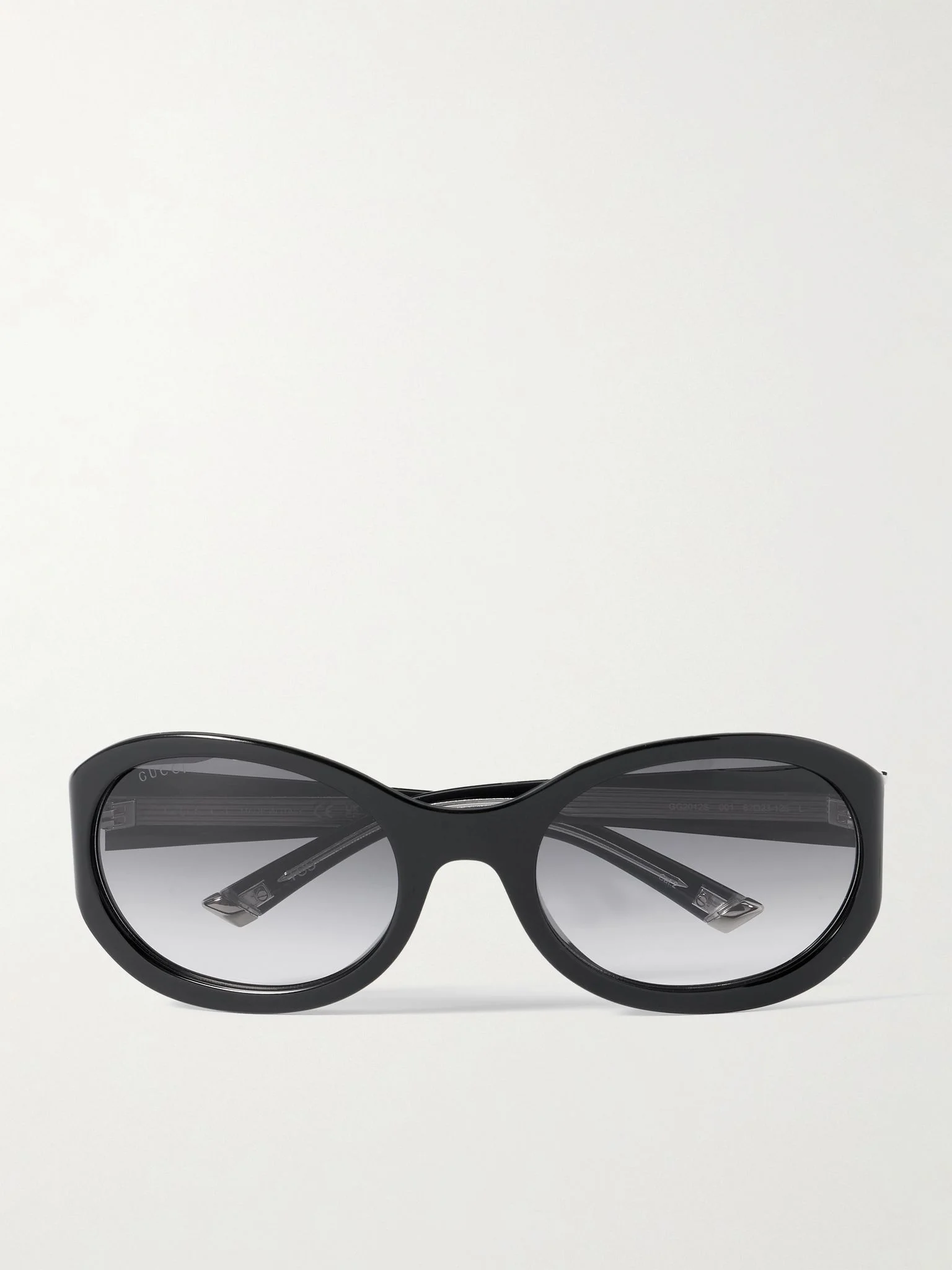 Gucci Eyewear's sunglasses made their debut on the Spring '25 runway in Milan. Characterized by a futuristic round-frame profile, they're made from robust acetate and have lightly tinted lenses. Details & Care - Black acetate - Come with a case - 100% UV protection