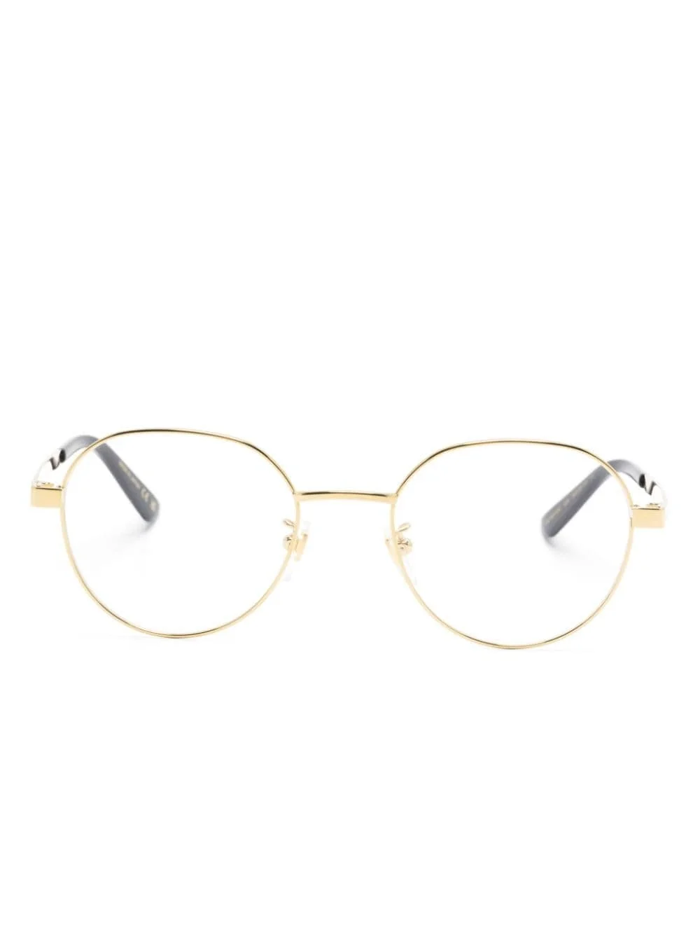 round-frame glasses Highlights - Gold-tone - Titanium - Round frame - Clear lenses - Nose pads - Logo-debossed arm - Straight arms with curved tips - These glasses come with a protective case. - All glasses from farfetch are sold as non-prescription frames. Imported Composition Titanium 100% SIZE & FIT Measurement Arm Length 5.7 in(14.5 cm) Bridge Width 0.78 in(2 cm) Lens Diameter 2.04 in(5.2 cm) Total Width 5.11 in(13 cm)