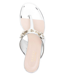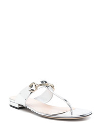 Horsebit flap sandals Highlights - Silver-tone - Slip-on style - Round open toe - Branded insole Made in Italy Composition Outer: Patent Calf Leather 100% Lining: Calf Leather 100% Sole: Rubber 100%, Calf Leather 100%