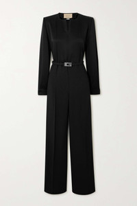 EDITORS'NOTES Gucci's jumpsuit is elegant and sophisticated, ensuring it will work just as well for an evening out as an important meeting. It's made from smooth satin in a slightly loose fit refined by padded shoulders and a logo-embellished belt at the waist. Adjust the zipper to reveal more or less of your décolletage. SIZE & FIT - Fits true to size, take your normal size - Designed to be slightly fitted at the bust and waist with wide-leg pants - Internal shoulder pads - Lightweight, non-stretchy fabric - Model is 177cm/ 5'10" and is wearing an IT 40 DETAILS & CARE - Black satin - Concealed zip fastening along front - 77% acetate, 23% viscose; lining: 75% acetate, 25% silk - Dry clean