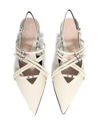 leather strappy ballerina shoes Highlights - Ivory - Calf leather - Multi-way straps - Silver-tone hardware - Logo-buckle detail - Buckle-fastening slingback strap - Pointed toe - Flat leather sole Made in Italy Composition Outer: Calf Leather 100% Sole: Calf Leather 100% Lining: Calf Leather 100%