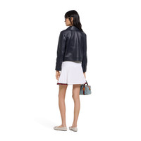 The collection plays with contrasts of matte and shiny textures, highlighting craftsmanship to create unique visual effects. Crafted from shiny leather, this jacket is enriched with an Horsebit hardware detail. - Dark blue shiny leather - Horsebt hardware detail - Tonal lining - Point neck - Two side pockets - Fixed belt at the waist - Button closure - Length: 18.5"; Shoulder: 15.4"; Sleeves length from center back: 30.2"; Hips: 37" based on a size 38 IT - Made in Italy - Genuine leather: Lambskin - Lining: 100% Viscose