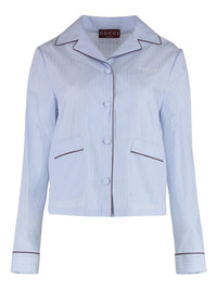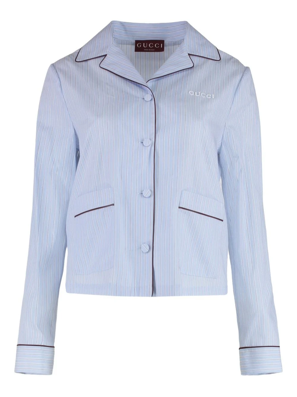 striped cotton shirt Highlights - Light blue - Striped pattern - Contrasting trim - Button fastening - Patch pockets - Long sleeves Made in Italy Composition Cotton 100%, Acetate 75%, Silk 25% Washing instructions Read Manufacturer Guidelines