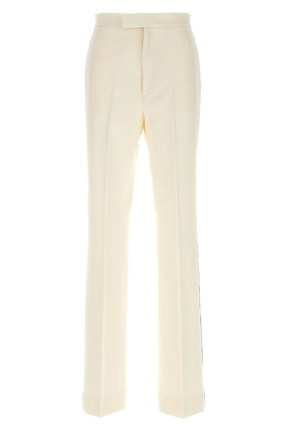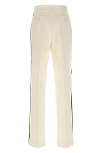 cod. 751329ZANSG9037 Wool pants with contrasting side bands, zipper, hook and button closure, pockets. Color: White/Black Size & Fit: true to size fit Composition: 100% wool