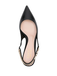 45mm Gucci Signoria pumps Highlights - Black - Elasticated slingback strap - Pointed toe Made in Italy Composition Lining: Calf Leather 100% Outer: Calf Leather 100% Sole: Calf Leather 100% SIZE & FIT Measurement HEEL 1.77 in(4.5 cm)