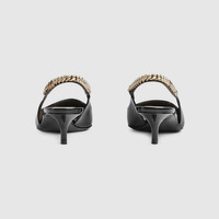 The Gucci Signoria pump, named after the central piazza of Florence, recalls the classic elegance of the House’s founding city. With its shiny patent leather, pointed toe and eye-catching Gucci chain, this slingback style elevates the everyday wardrobe for the coming season. - Black patent leather - Women's - Pointed toe - Gucci chain, stitched by hand - Leather sole - Elastic slingback closure - Low heel - 1.7" heel height, based on a size 37 (IT) - Made in Italy