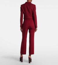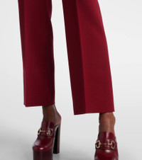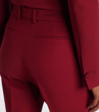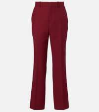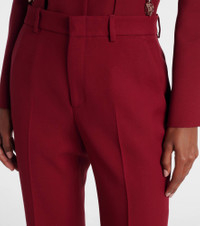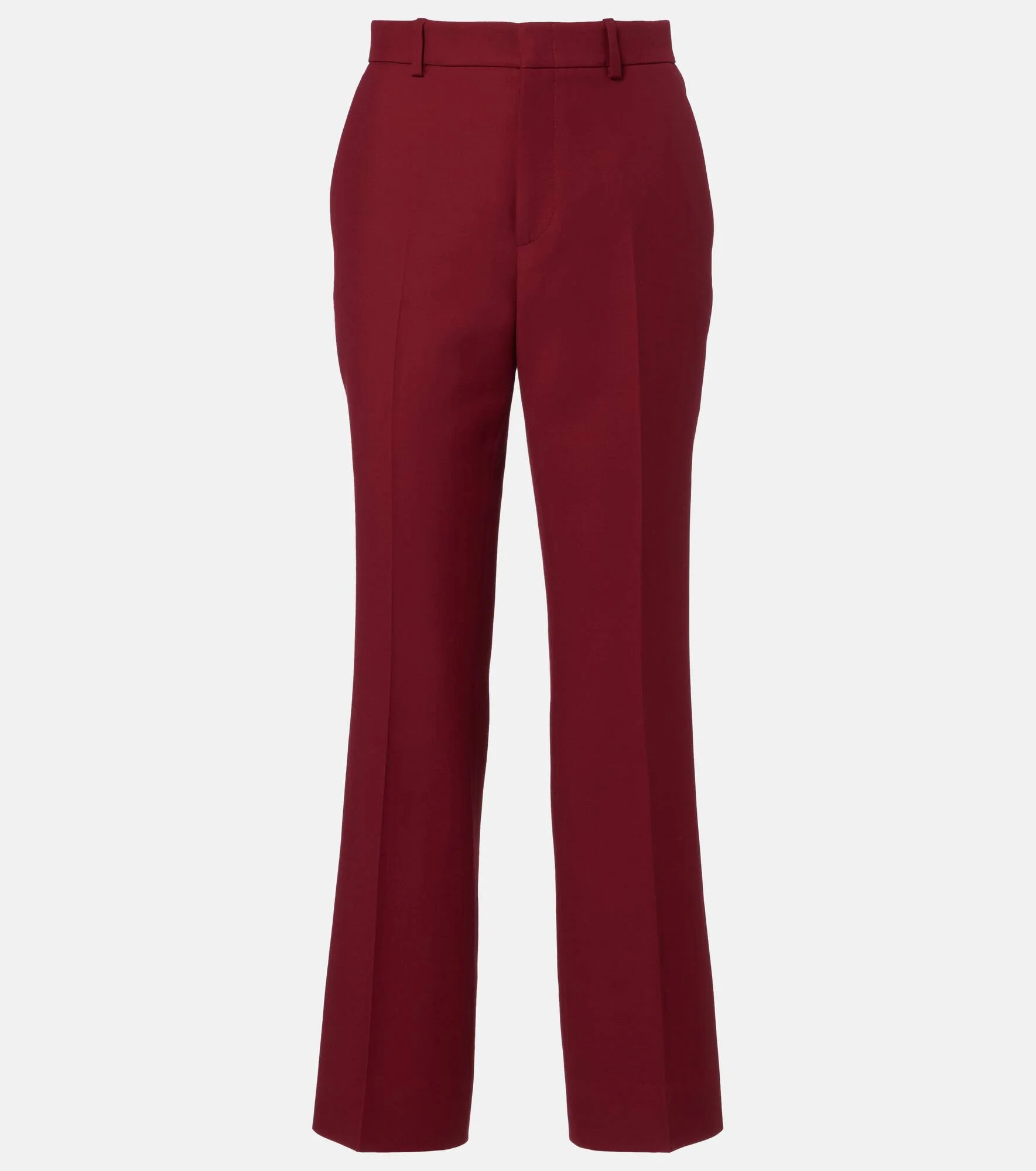 Gucci brings understated sophistication to tailored dressing with these straight-leg pants, crafted from soft silk and wool. Designed with crisp leg creases, this pair includes side and back pockets, and a classic zip, hook, and button fastening. Product Details - Material: 53% silk, 47% wool - Care instructions: dry clean - Made in Italy - Designer color name: Rosso Ancora - Item color: burgundy - Embroidery: 100% polyester - Lining: 100% viscose - Contains non-textile parts of animal origin - Closure: zipper fly, button and hook fastenings - Pockets: side slit pockets, back pockets - Belt loops - Item number: P01052867 Size & Fit - True to size - Non-stretchy fabric - Straight leg - The model seen in the picture is 178cm-5'10" and wearing a size IT 40