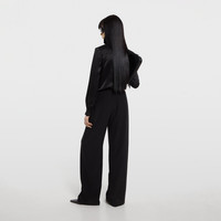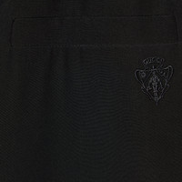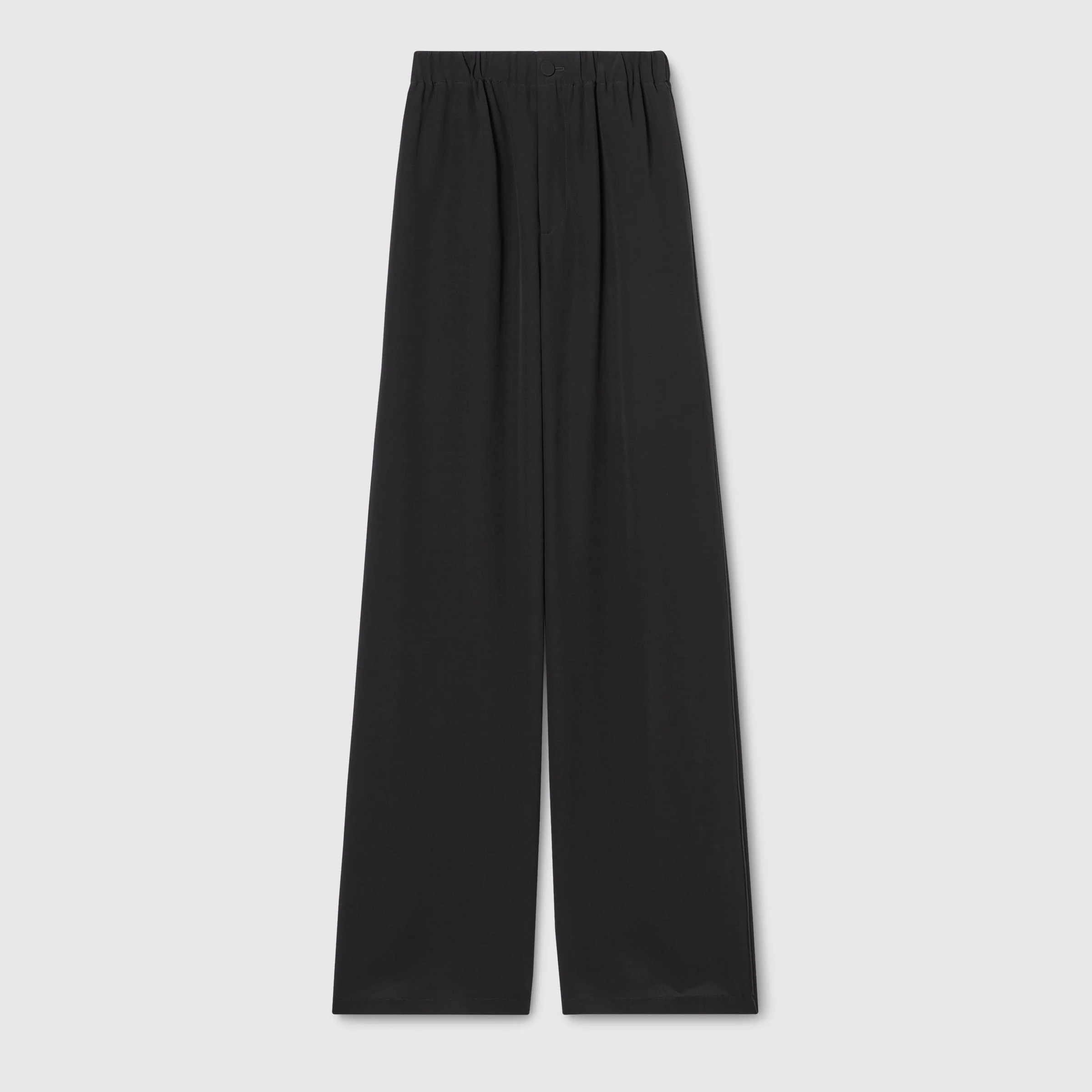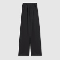 Introducing Spring Summer 2026. This style is inspired by the "Ereditiera" look of La Famiglia. The collection reinterprets the House’s codes through singular personalities and distinctive aesthetic attitudes. Crafted from silk crepe de chine, this pair of pants is enriched with a Gucci crest embroidery. - Black silk crepe de chine - Gucci crest embroidery - Piping detail - Unlined - Elastic waistband with drawstring - Back pockets - Length: 43.7"; Leg opening: 24.2", based on a size 42(IT) - Made in Italy - Fabric: 100% Silk - Embroidery: 100% Polyester