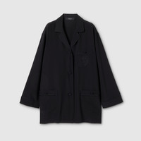 Introducing Spring Summer 2026. This style is inspired by the "Ereditiera" look of La Famiglia. The collection reinterprets the House’s codes through singular personalities and distinctive aesthetic attitudes. Crafted from silk crepe de chine, this shirt is enriched with a Gucci crest embroidery. - Black silk crepe de chine - Gucci crest embroidery - Piping detail - Open collar - Chest pocket - Side pockets - Front button closure - Length: 31.1", based on a size 42(IT) - Made in Italy - Fabric: 100% Silk - Embroidery: 100% Polyester