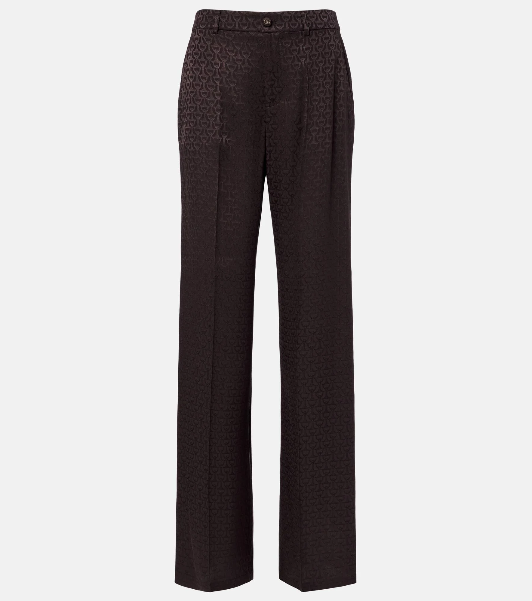 An iconic name within fashion on a global scale, Gucci was founded in Florence in 1921. These wide-leg pants are made in Italy from pure silk jacquard. Product Details - Material: 100% silk - Care instructions: dry clean - Made in Italy - Color: brown - Designer color name: Deep Chocolate - Pocket lining: 75% acetate, 25% silk - Contains non-textile parts of animal origin - Belt loops - Elasticated waistband - Pockets: side slit pockets - Closure: zipper fly, button fastening - Item number: P01119208 Size & Fit - True to size - Elasticated waist - Non-stretchy fabric - Wide-leg - High-waisted - The model seen in the picture is 178cm-5'10" and wearing a size IT 40