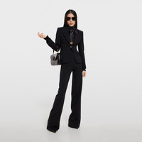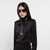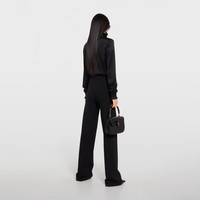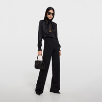 Introducing Spring Summer 2026. This style is featured as part of the "La Gallerista" look of La Famiglia, which interprets the House's codes through singular personalities and distinctive aesthetic attitudes. Crafted from silk satin, this shirt is defined by a self-tie bow. - Black silk satin - Self-tie bow - Ruffled collar - Ruffled trim - Front button closure - Length: 25", based on a size 38(IT) - Made in Italy - Fabric: 100% Silk - Inner: 100% Silk