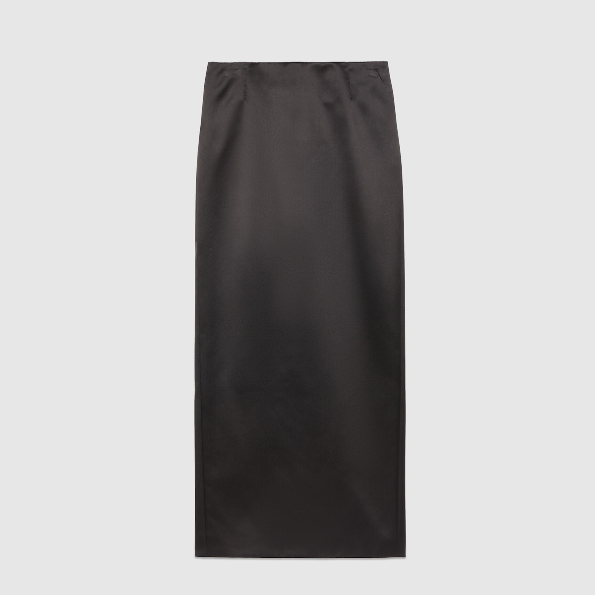 The season's sleek silhouette draws inspirations from the 1990s, with slim-fitting tops and slightly low-slung bottoms. Fine knitwear featuring mohair, wool and other natural fibers emphasize the shoulderline, while skirts and pants hit just below the waistline. This elevated skirt has been crafted from black silk duchesse and is defined by an Interlocking G zip puller. - Black silk duchesse - Lined - Interlocking G zip puller - Rear vent - Zip closure - Length: 39.3", based on a size 40 (IT) - Made in Italy - The product shown in this image is a size 40 (IT)