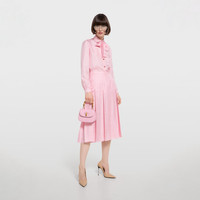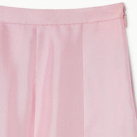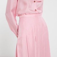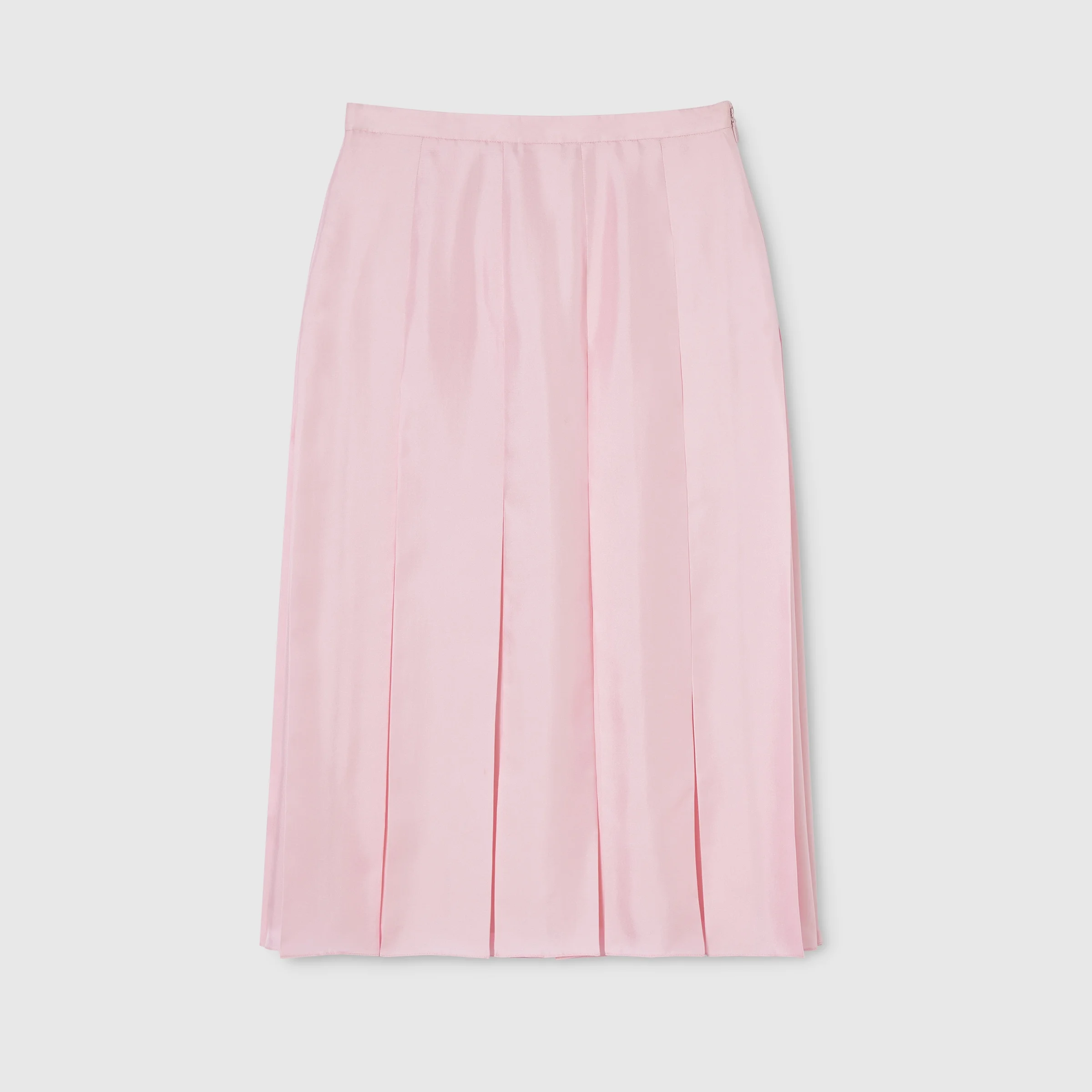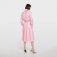 Introducing Spring Summer 2026. This style is inspired by the "La Principessa" look of La Famiglia. The collection reinterprets the House’s codes through singular personalities and distinctive aesthetic attitudes. This pleated midi skirt is presented in light pink silk twill. - Light pink silk twill - Unlined - Pleated - Side zip closure - Length: 30.7", based on a size 38(IT) - Made in Italy - Fabric: 100% Silk