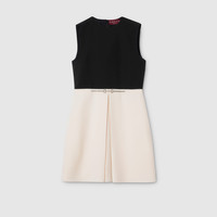 Crystal embellishments illuminate looks that transition effortlessly from day to night, revisiting signature motifs such as the GG pattern and Horsebit motif. Crafted from cady crepe silk wool, this dress is enriched with a crystal Horsebit detail. - Off white and black cady crepe silk wool - Crystal Horsebit detail - Lined - Crewneck - Sleeveless - Side pockets - Back zip closure