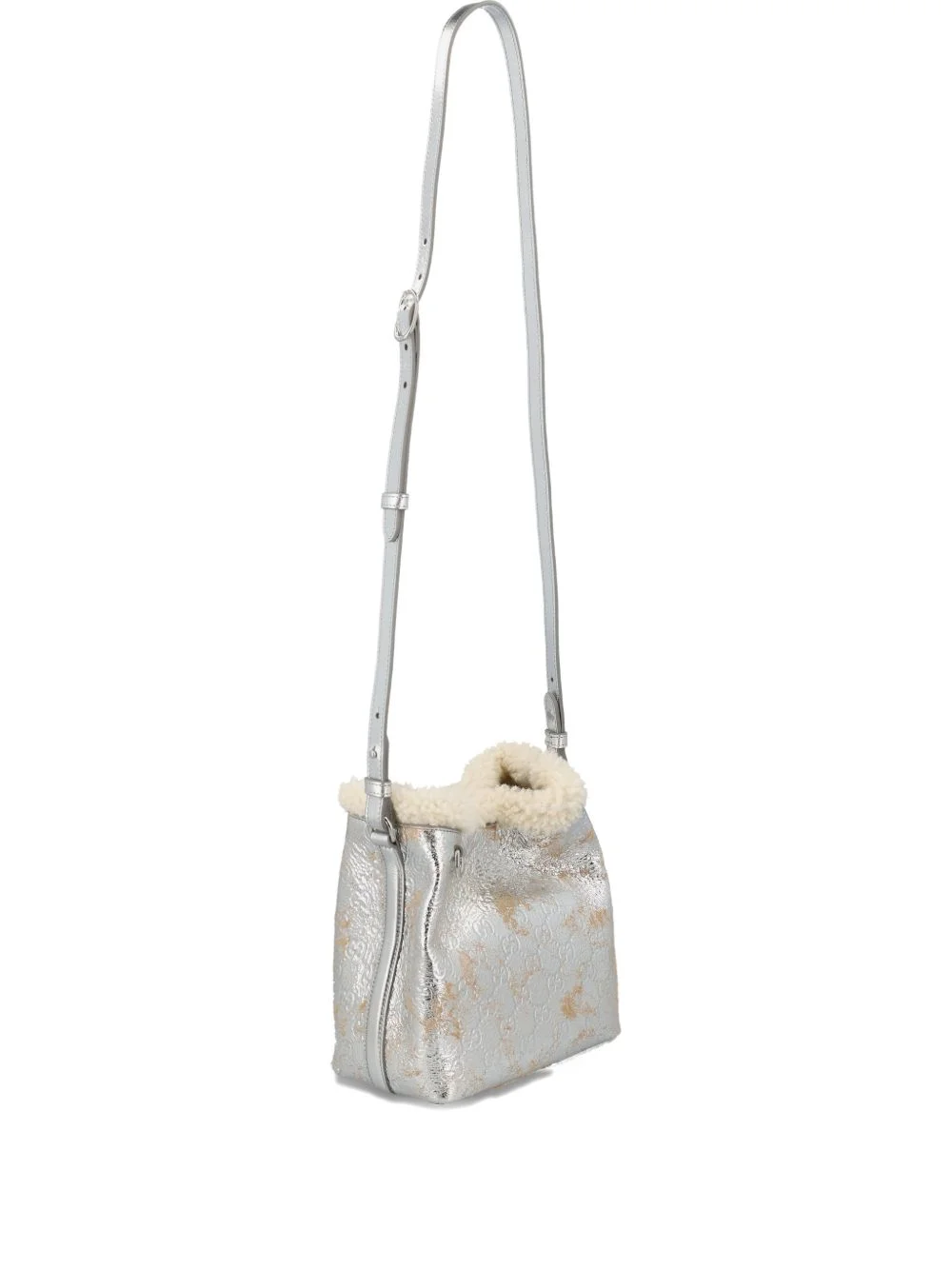 small GG Emblem bucket bag Highlights - Silver-tone - Shearling trim - Single top-handle - Adjustable and detachable shoulder strap - This piece comes complete with a protective dust bag. Made in Italy Composition Outer: Calf Leather 100%, Lamb Shearling 100% Lining: Cotton 100%, Linen/Flax 100% SIZE & FIT Measurement DEPTH 4.33 in(11 cm) HEIGHT 7.08 in(18 cm) WIDTH 7.48 in(19 cm) Washing instructions Read Manufacturer Guidelines