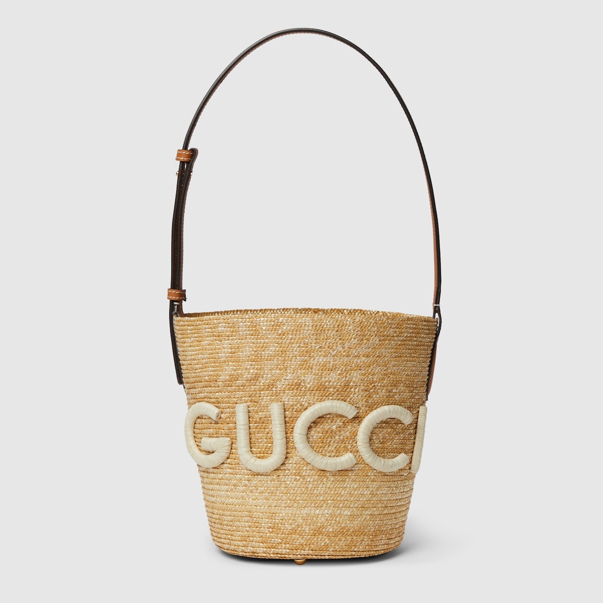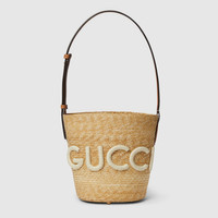 Inspired by the summer spirit and beach clubs on the Italian coast, this item is part of Gucci Lido. The House's straw accessories shed new light on the traditional material in vibrant colors and iconic motifs. This shoulder bag features a brown leather strap across a natural base. The name of the House appears as a straw Gucci patch in keeping with the warm weather feel. - Natural wheat straw - Brown leather trim - Straw Gucci patch - Cotton linen lining - Leather shoulder strap with 10.8" drop - Weight: 1lbs approximately - Small: 6.5"W x 8.5"H x 6.5"D - Made in Italy - Fits up to: iPhone Plus, Airpods, wallet, and lipstick