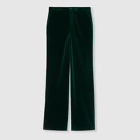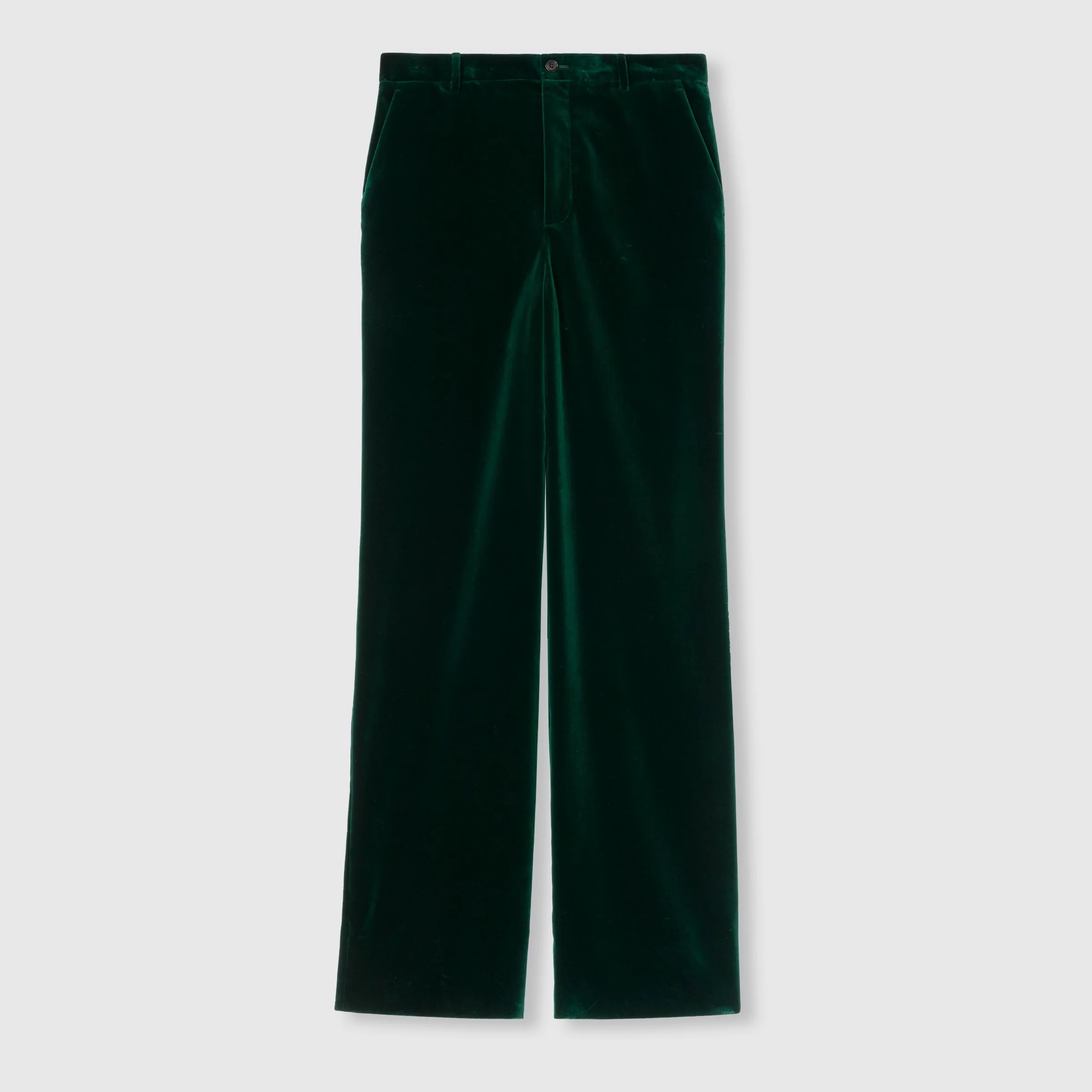 In the Fall Winter 2025 collection, timeless tailoring is revisited with a focus on materials. These pants feature a straight leg and internal tape belt, blending clean lines with ease of wear. Front and back pockets complete the look. - Dark green soft stretch cotton velvet - Unlined - Internal tape belt - Front slash pockets - Back welt pockets - Length: 48.8"; Hem width: 23.2"; based on size 42 IT - Made in Italy